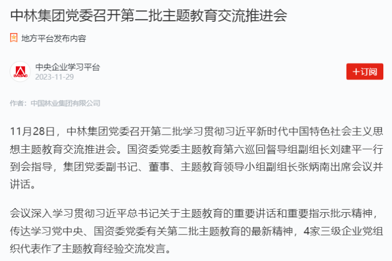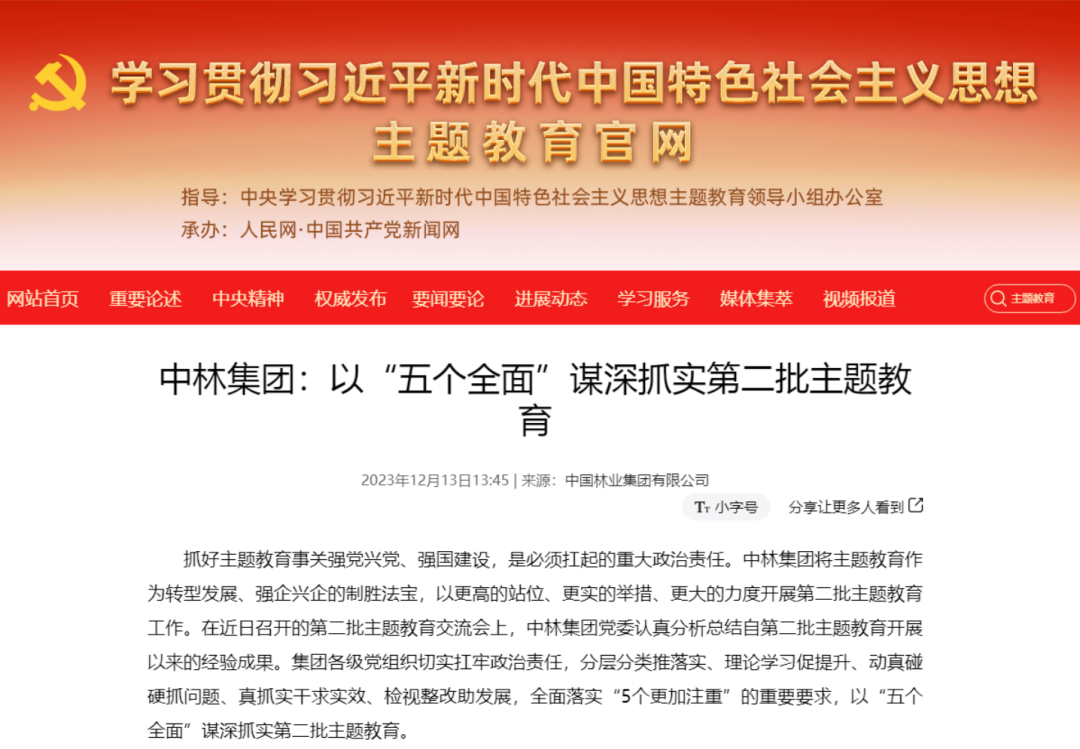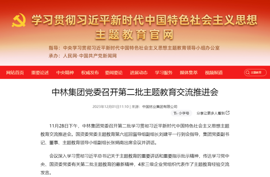 赞!中央主题教育官网、“学习强国”连续刊发中林集团主题教育成果成效