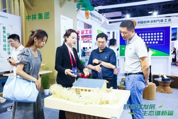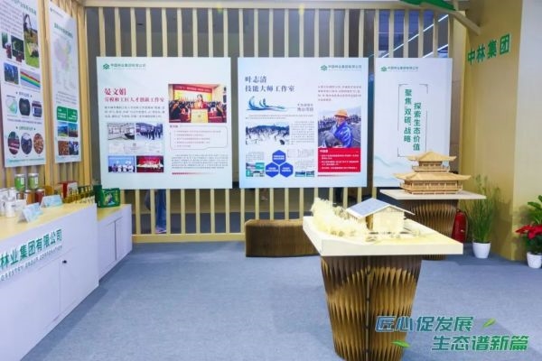 本次展览中林集团以“聚焦国家‘双碳’战略,引领林业产业发展”为主题,分“融国之大者 聚万众之力”“‘双碳’战略领跑者”“生态产品价值实现示范者”“构建现代林业产业体系领军者”“国家木材安全压舱石”五个业务板块及“晏文娟劳模和工匠人才创新工作室”“叶志清技能大师工作室”两个劳模板块全面展示了中林集团心怀“国之大者”,在扩绿增汇、固碳减排、合作共赢的绿色发展新模式新路径方面以及在劳模培育方面的探索与贡献。