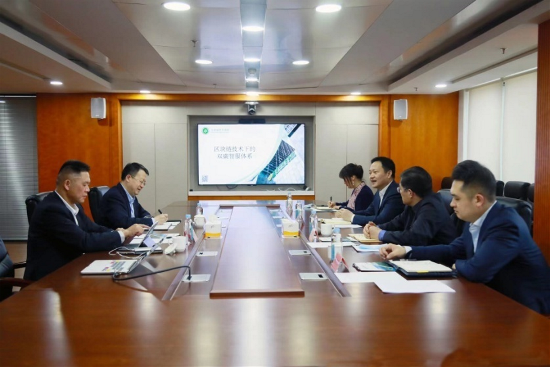 4月8日,集团公司党委书记、董事长余红辉会见了北京绿色交易所董事长王乃祥一行,双方就打造双碳数字化智慧服务体系进行了深入交流。