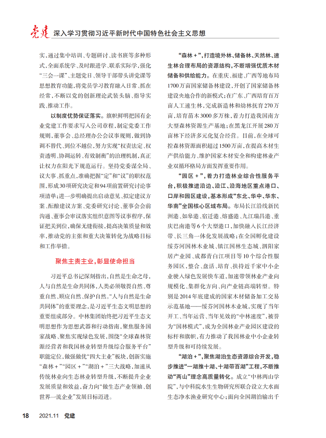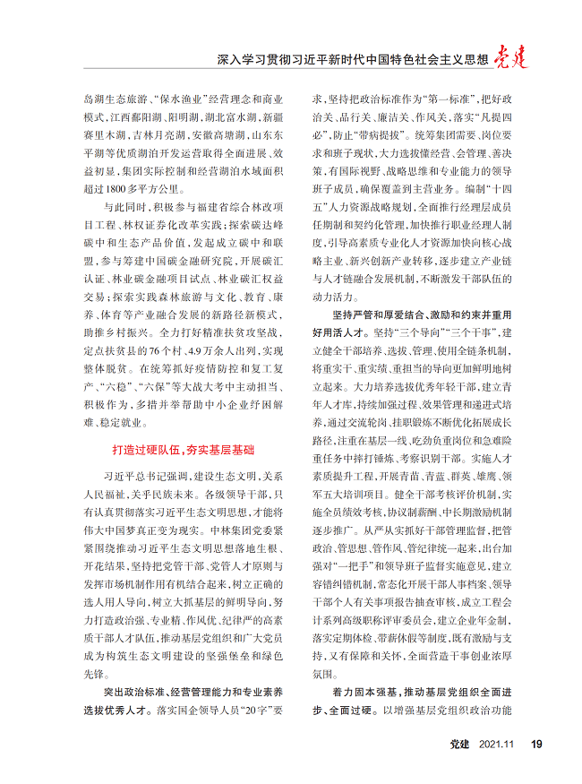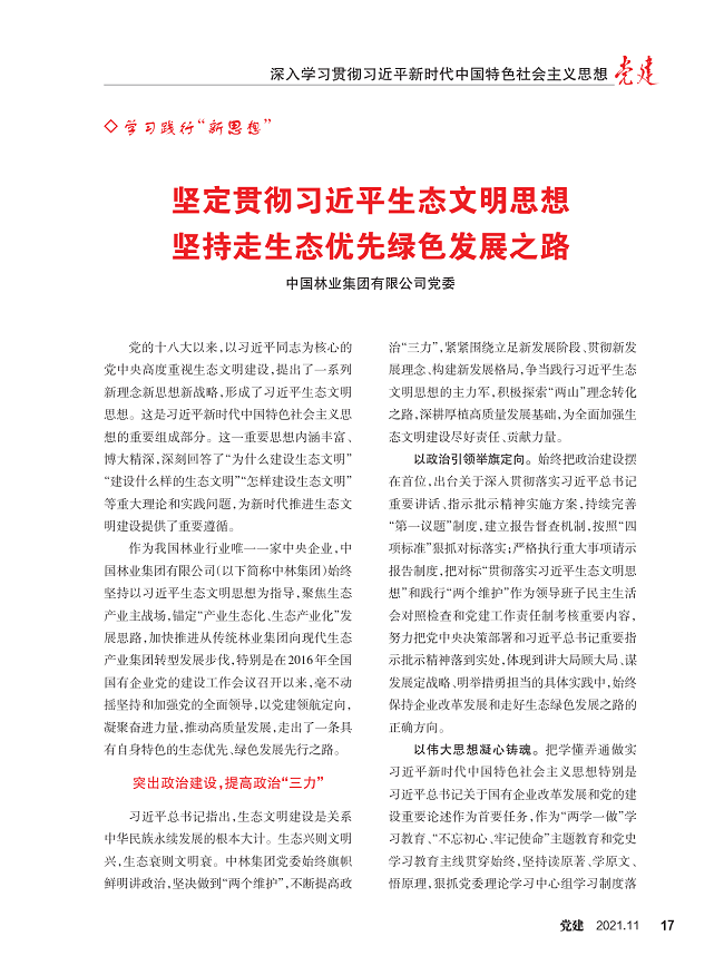 《党建》杂志刊登集团党委文章:坚定贯彻习近平生态文明思想 坚持走生态优先绿色发展之路