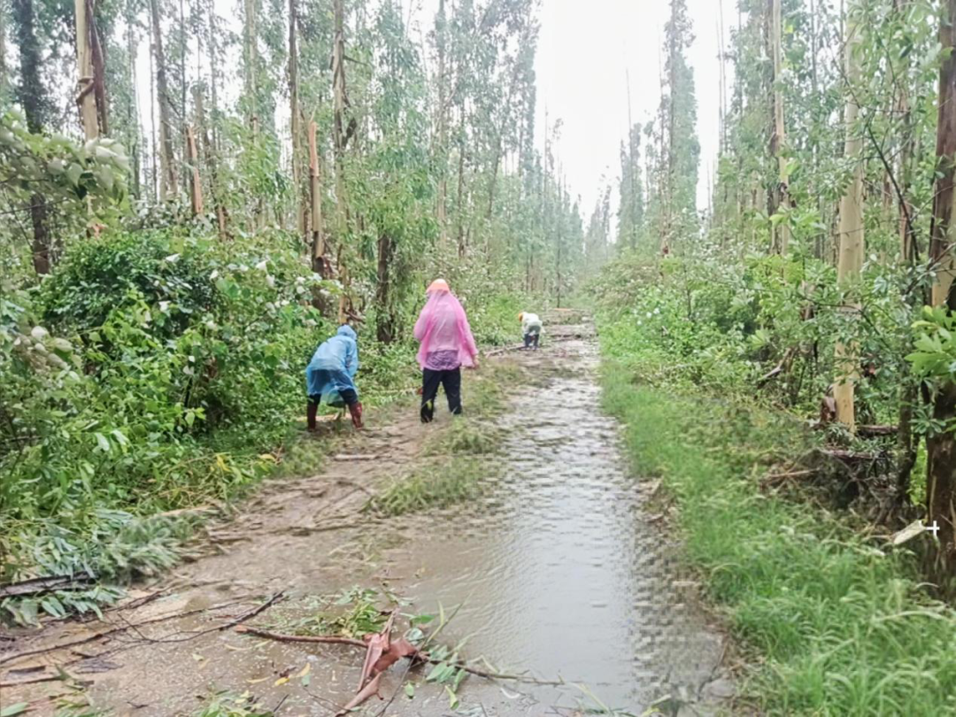 6月14日,今年第1号台风“蝴蝶”在广东省雷州半岛沿海强势登陆,导致当地遭遇狂风暴雨侵袭,林区基础设施与林木资源均受到不同程度的损失。台风过境后,中林雷林公司所属各单位即刻响应,迅速组织精干力量,争分夺秒投入灾后清理和道路疏通工作,全力保障林区道路畅通和林区生产生活秩序尽快恢复。