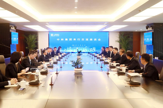 11月11日,中林集团党委书记、董事长余红辉与上海银行党委副书记、行长朱健在沪举行工作会谈,双方就进一步深化银企合作进行深入交流。 余红辉感谢上海银行一直以来给予中林集团的支持和帮助,并简要介绍了中林