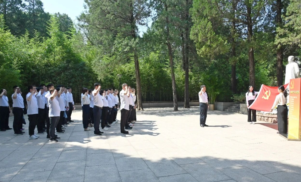 物资公司党委组织在京党员、入党积极分子、团员赴李大钊烈士陵园开展庆“七一”主题党日活动,缅怀革命先烈、汲取奋进力量。全体人员在李大钊烈士雕像前整齐肃立,向李大钊烈士三鞠躬,并默哀一分钟,表达对革命先烈的崇高敬意和无限缅怀。随后大家参观学习李大钊烈士革命事迹陈列室,深入了解李大钊烈士的生平事迹和光辉精神。参观结束后,全体党员列队肃立于李大钊烈士雕像前,面对鲜红的党旗重温入党誓言。
