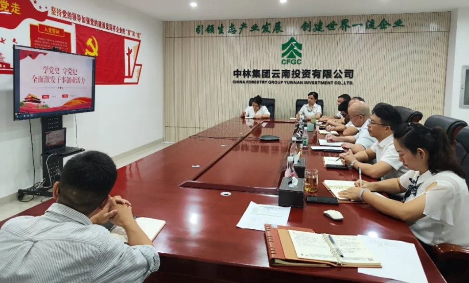 中林集团云南投资有限公司党支部结合党史学习教育、党纪学习教育,开展庆“七一”主题党日系列活动。公司党支部组织党员认真观看了《上海的创党实践·老渔阳里》《真理的种子在青年革命者心中萌发·新渔阳里》等“红色筑梦‘四史’现场讲”系列微党课。此外,公司党支部书记还以“学党史、守党纪、全面激发干事创业活力”为题为大家讲授专题党课,系统回顾了中国共产党百年奋斗的历史脉络和中国共产党纪律建设曲折而光荣、艰辛而伟大的历程,深刻阐述了加强纪律建设和开展党纪学习教育的历史意义、现实意义,让“遵规守纪”成为公司全体党员干部的思想自觉和行动自觉。