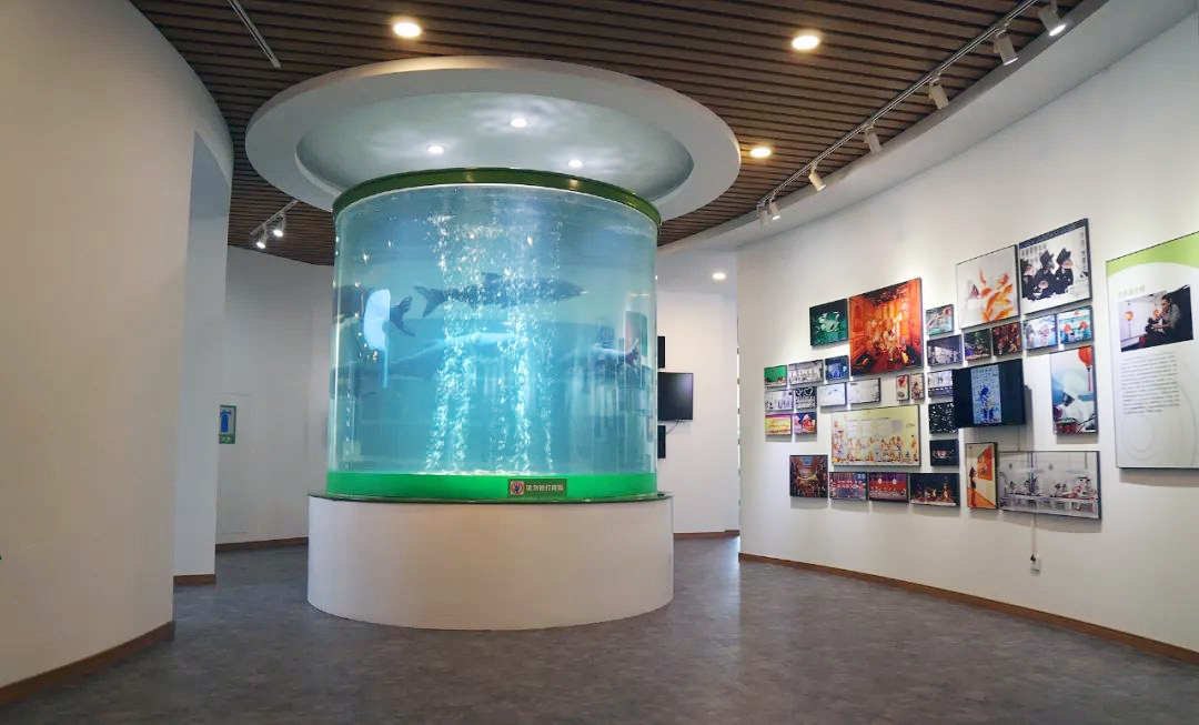 千岛湖鱼博馆创立于2015年,是国内第一家专业的鱼文化博物馆,也是浙江自然博物馆的分馆,2022年获批“杭州市青少年科普教育基地”。全馆建筑面积810平方米,全方位展示了最古老的鱼、最大的鱼、最全的鱼、最欢快的鱼、最生态的鱼、最文化的鱼、最萌的鱼和最视角的鱼,融知识性、体验性、观赏性、品牌性为一体,是千岛湖鱼文化和中国鱼文化的集中展示窗口。