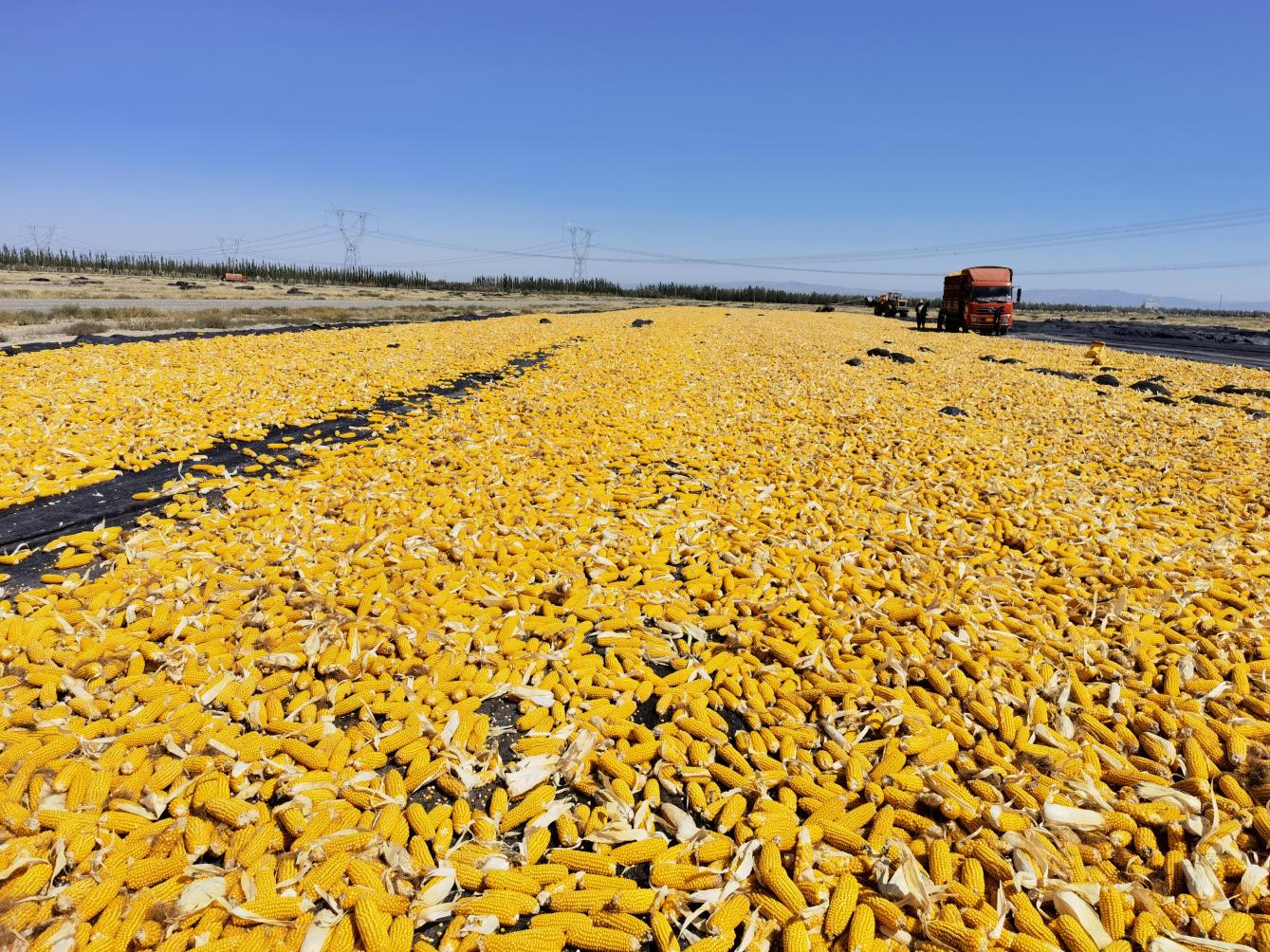 “金张掖”的金色,是玉米丰收的颜色,也是金象的颜色。一车车金黄色的玉米棒子成为眼前一道靓丽的风景线,将戈壁荒滩染成了金黄色,处处是一派“满滩尽带黄金甲”的丰收景象。
