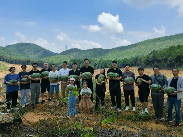栽植地套种约一万株西瓜苗,在公司技术人员的精心指导下,西瓜种植不仅获得丰收,同时,水肥管理对碧根果苗的生长也起到较大的促进作用,碧根果苗已经有部分开始挂果,待盛果期时定会迎来丰收。在农户两个多月的精心管护下,西瓜茁壮成长、品质优秀,实现亩产超千斤、总产近20万斤的喜人成果。公司还积极发挥渠道优势,主动帮助联系各地批发商销往厦漳泉等地,取得了带动每户林农增收5000元以上的喜人成绩。本次帮扶活动成功带动了20余名当地林农帮扶对象创收增收,还专门针对当地一名残疾林农进行上门技术培训指导。