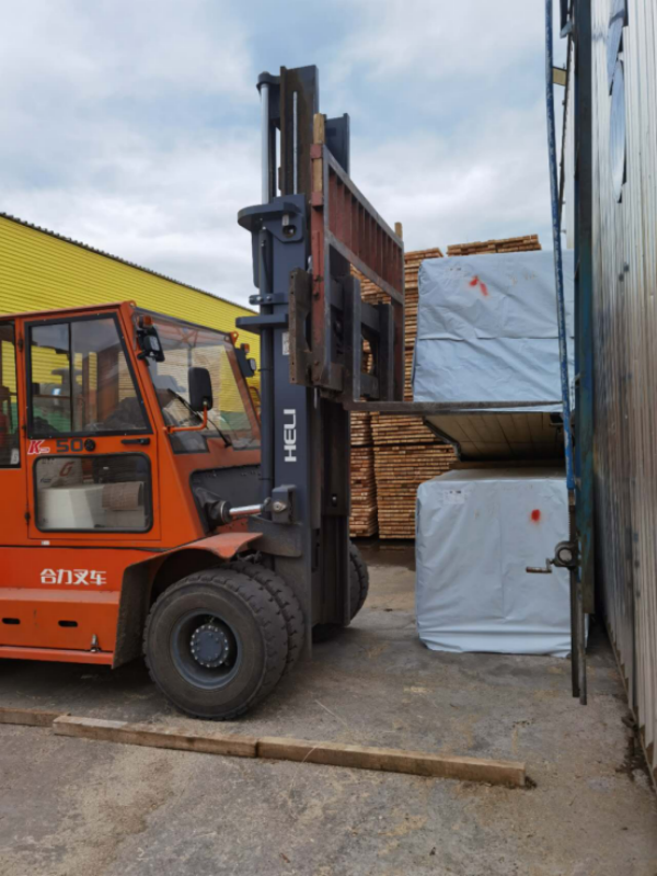 作业标准记得牢 安全生产无烦恼 林场集团所属上海川汨贸易有限公司境外加工厂工人开叉车从板材车间叉运板材成品包。叉载物品时,应按需要调整两货叉间距,使两叉负荷均衡,不得偏斜。叉车驾驶员严格按标准熟练操作,大大提高了作业效率。(摄影:侯兆强)