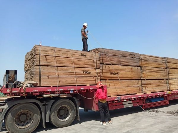 林场集团所属西安中林国铁物流现场部工作人员坚持安全第一的工作原则,装货员将客户定购的木材装车,负责扎捆人员上车检查木材是否摆放平稳,并及时调整木材摆放位置,与地面人员协同合作,用扎捆绳把木材与车厢牢固捆绑,防止运输途中木材散落,保障木材运输安全。(摄影:杨霜)