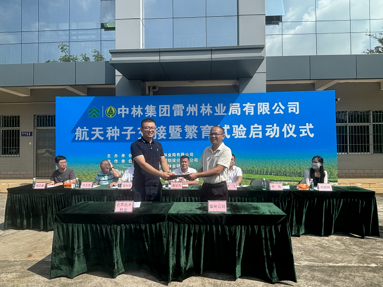 日前,雷林公司与中国林科院热带林业研究所、北京丛木林业规划设计有限公司合作选送的神舟十六号飞船搭载种子已顺利返回,为切实做好航天种子交接及后续繁育试验工作,9月27日,雷林公司在林业科学研究分公司举行航天种子交接仪式,首次开启桉树航天种子在公司的繁育试验之路。