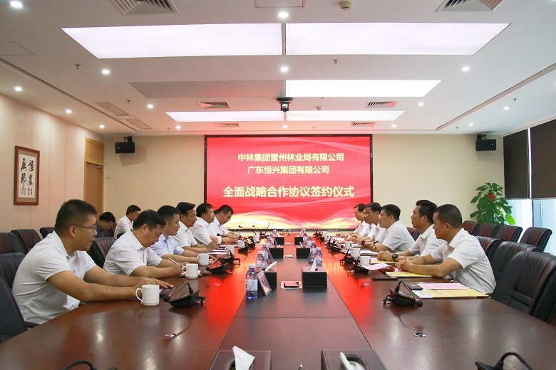 会上,张立丰介绍了雷林公司的发展历程及战略目标。他表示,雷林公司是一家有着近70年林业生产经营历史的中央企业。近年来,雷林公司认真贯彻落实党的二十大精神和习近平总书记关于生态文明建设的重要论述,围绕集团“引领生态产业发展,创建世界一流企业”的使命,着力构建“科研积累+ 一二三产联动”发展经营总体布局,与广东恒兴集团有着广阔的合作前景。“林农不分家”,希望以此次签订协议为契机,加强双方在农林生态、海洋经济等方面的合作,充分发挥双方资源优势,强强联手,进一步助力国家乡村振兴战略及国家“双碳”战略,为湛江打造“红树林之城”建设贡献力量。 陈丹对雷林公司多年来取得经营成果给予充分认可,对未来与雷林公司合作充满希望。他表示,广东恒兴集团是一家有着30多年农业发展历程的大型民营企业,在种苗繁育、饲料生产、水产养殖、水产品加工、智慧渔业等领域取得显著业绩。雷林公司拥有丰富的林业产业资源,与广东恒兴集团的农业、渔业、畜牧业等方面有许多可共享的空间和领域,可在资源、市场、品牌、销售等方面找准合作的切入点,希望双方发挥各自的优势,推动合作,实现共赢。