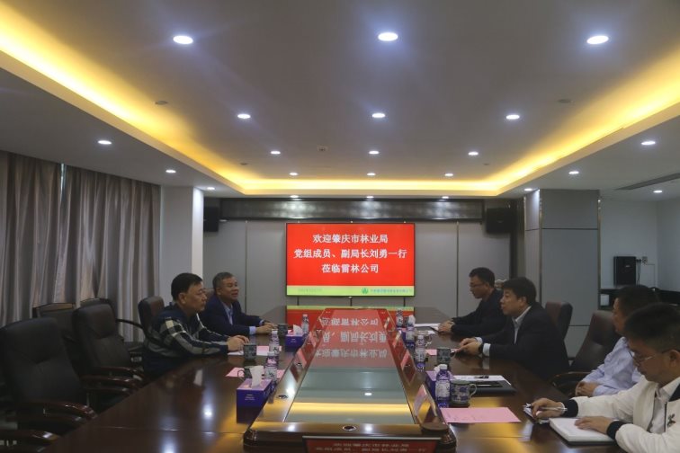 12月7日,公司党委书记、董事长潘松海会见到访的肇庆市林业局党组成员、副局长刘勇一行,双方就共同推进肇庆市国家储备林项目进行了沟通交流。