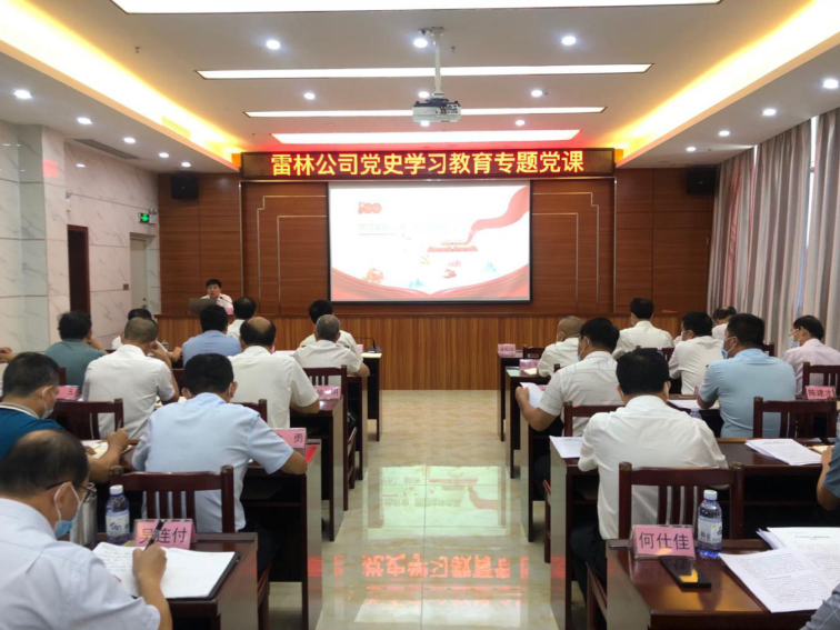 潘松海表示,党史国史博大精深,是我党丰富的思想宝藏。作为党员干部,我们要带头认真贯彻习总书记关于党史国史的一系列重要论述,加强对党史国史的学习,传承精神、学习经验、明辨史实,从党史国史中汲取智慧和力量,并把这种智慧和力量融入到我们企业的改革发展中,切实把学习教育成果转化为推动公司高质量发展的不竭动力。 他紧密结合百年党史,分享了学习党史的重要意义是什么、具体学什么、我们要怎么做。他提出,一是深刻认识开展党史学习教育的重大意义,增强抓好学习教育的思想政治行动自觉;二是深刻认识党的十八大以来在党的百年奋斗史上的特殊历史地位,进一步增强“两个维护”的政治自觉、历史自觉、行动自觉;三是深刻认识党的百年奋斗史是一部党的自我革命的历史,继续发扬彻底的革命精神,坚定不移推进全面从严治党向纵深拓展;四是深刻认识党的百年奋斗史是一部为中国人民谋幸福、为中华民族谋复兴的历史,不忘初心、牢记使命,切实把以人民为中心植根心底、见诸行动;五是加强组织领导,务求学习教育取得实效;六是大力发扬“爱国忠心、奉献恒心、绿色初心”的雷林精神。