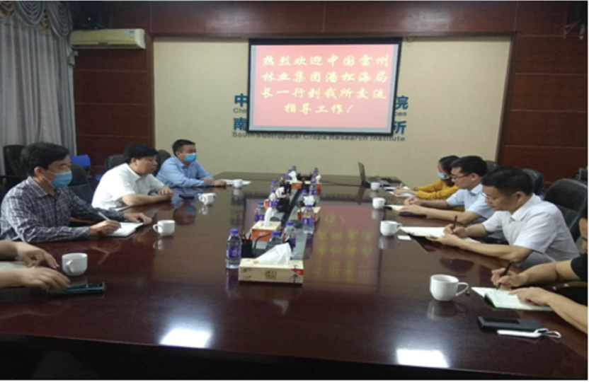 2020年4月17日,公司执行董事、总经理潘松海率队前往中国热带农业科学院南亚热带作物研究所进行实地考察,寻求科技合作,支撑公司转型发展。南亚所党委副书记、副所长杜丽清、副所长詹儒林、李普旺及农产品加工研究所焦静副研究员等一起参加了座谈会。