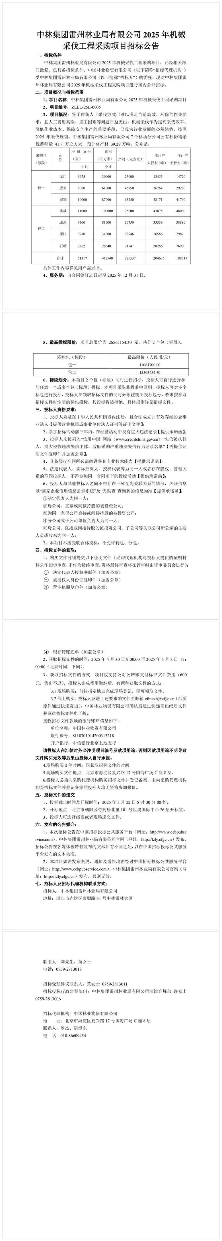 中林集团雷州林业局有限公司 2025 年机械 采伐工程采购项目招标公告