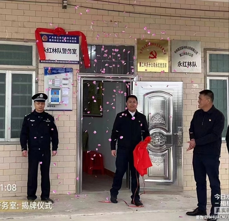 为深入贯彻落实习近平生态文明思想,践行“绿水青山就是金山银山”的理念,围绕构建绿美广东生态建设新格局,进一步推进平安林区建设,筑牢林区社会治安防控体系,廉江林场分公司联合广东省公安厅森林公安局雷州林区分局,在永红林队设立“森林义警”警务室,并于12月19日上午举行警务室揭牌仪式。分公司领导班子成员、雷州林区分局领导、廉江及石岭派出所民警等30多人参加仪式。