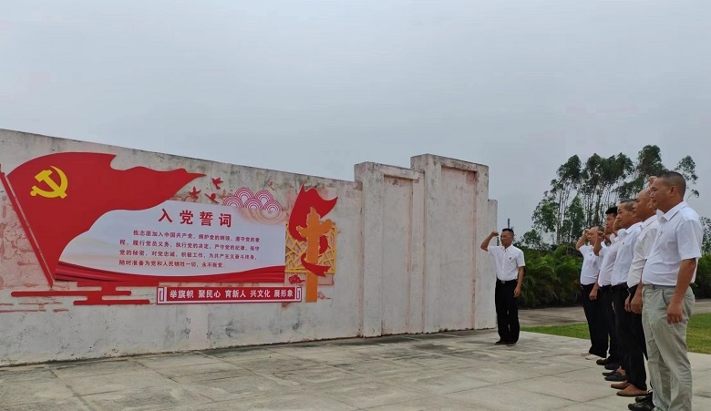 在纪念馆广场上,全体党员高举右拳,面向党旗,在党支部书记蔡小能领誓下,重温入党誓词,铿锵有力的宣誓声在广场上久久回荡,进一步坚定党员干部理想信念。在遂溪西南地区革命史馆内,大家追寻红色足迹,共同重温了湛江市以及遂溪县的革命斗争史,深刻感悟革命前辈艰苦奋斗的革命精神,不断净化心灵,洗礼思想。