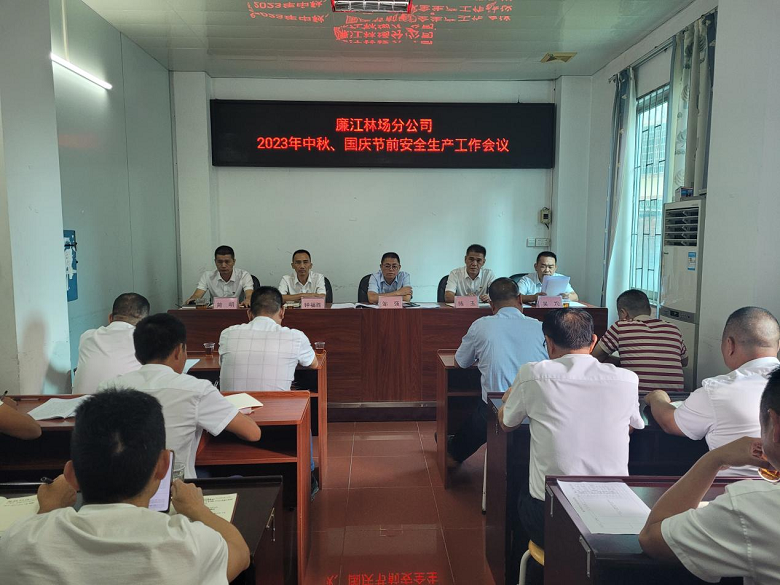 为进一步牢固树立安全发展理念,持续强化风险防范意识,确保公司安全生产工作稳定有序开展。节前,肇庆公司、廉江及龙门林场分公司召开2023年中秋、国庆节前安全生产工作会议,进一步部署落实相关工作,从严从细抓好双节期间安全防范工作。分公司领导班子成员、各部门负责人及相关人员参加会议。