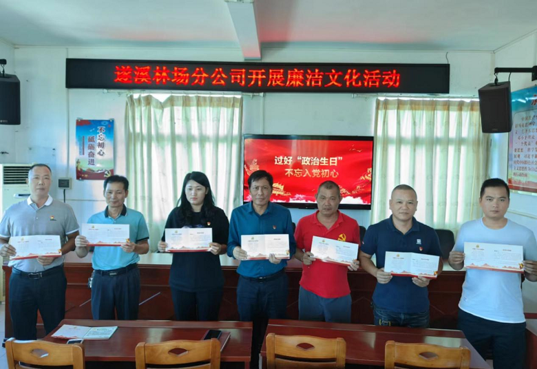 为深入推进林区廉洁文化建设,营造风清气正、崇廉尚洁的良好氛围,8月31日上午,遂溪林场分公司开展廉洁文化活动,给党员同志举行了一场别开生面的政治生日会。