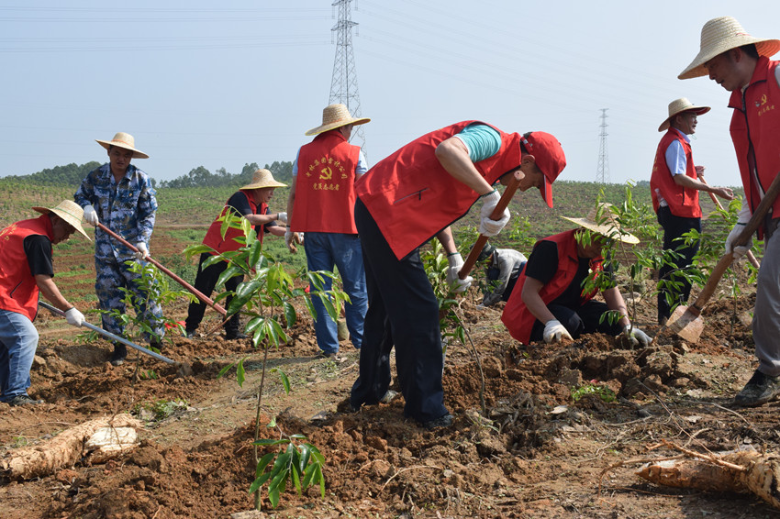植树添新绿,党员树先锋。为深入学习贯彻党的二十大精神和习近平生态文明思想,牢固树立和践行“绿水青山就是金山银山”理念,大力推进国土绿化行动,落实森林质量精准提升工程,助力“绿美广东”生态建设,推动雷林公司绿色高质量发展。5月17日,廉江林场分公司组织机关党支部到沉香种植基地开展主题党日活动。