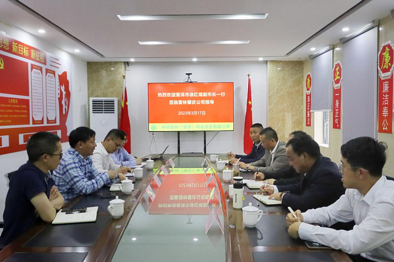 3月17日,云南省普洱市副市长徐红斌一行到肇庆公司考察,双方就国家储备林项目建设情况进行交流座谈。