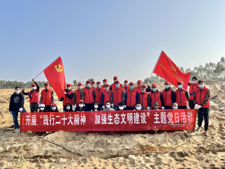 12月13日,唐家林场分公司党总支联合森林公安局雷州林区分局纪家派出所党支部开展“践行二十大精神 加强生态文明建设”主题党日活动,组织党员干部对已收复的被占林地进行植树造林,用实际行动践行习近平生态文明思想,争做生态文明建设的参与者、实践者、推动者。