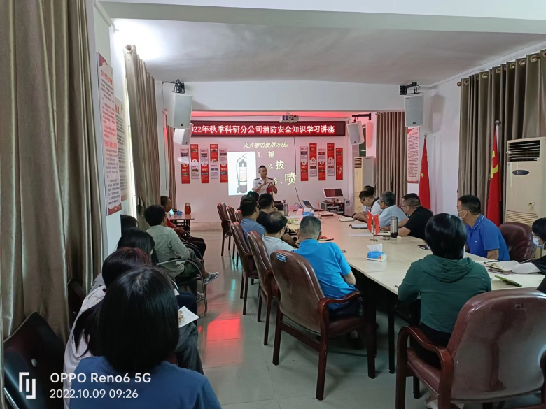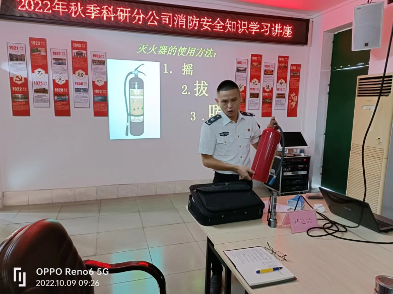 为全面加强安全生产管理工作,提升干部职工消防安全意识,提高突发事件应急处置能力。10月9日,科学研究分公司邀请粤消安防火中心消防专业人员对全体干部职工开展秋季消防安全知识培训。